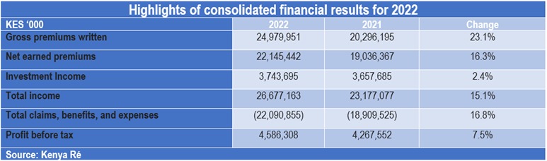 Kenya Re Pockets a net profit of US$27.5 million in 2022, up 15% from 2021.